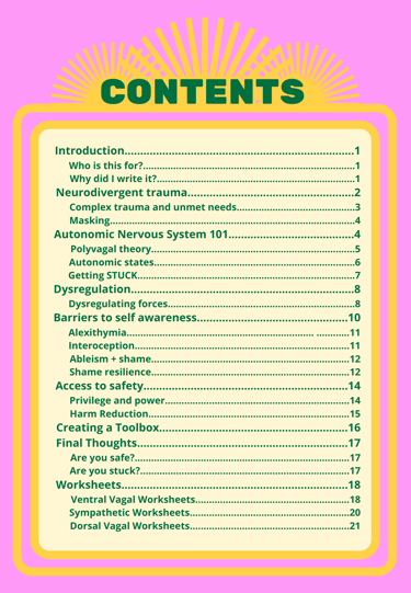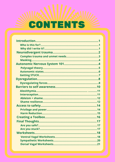 Download this workbook if you are looking for insights on neurodivergent trauma and how it affects your daily life. This workbook is here to help you build a toolbox of skills and resources for nervous system regulation.